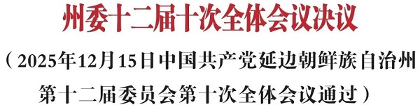 中国共产党延边朝鲜族自治州第十二届委员会第十次全体会议,于2025年12月15日在延吉召开。